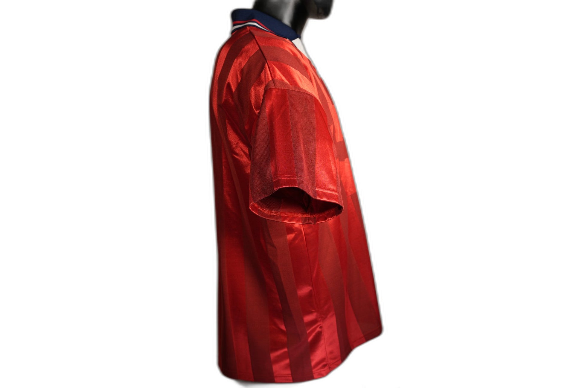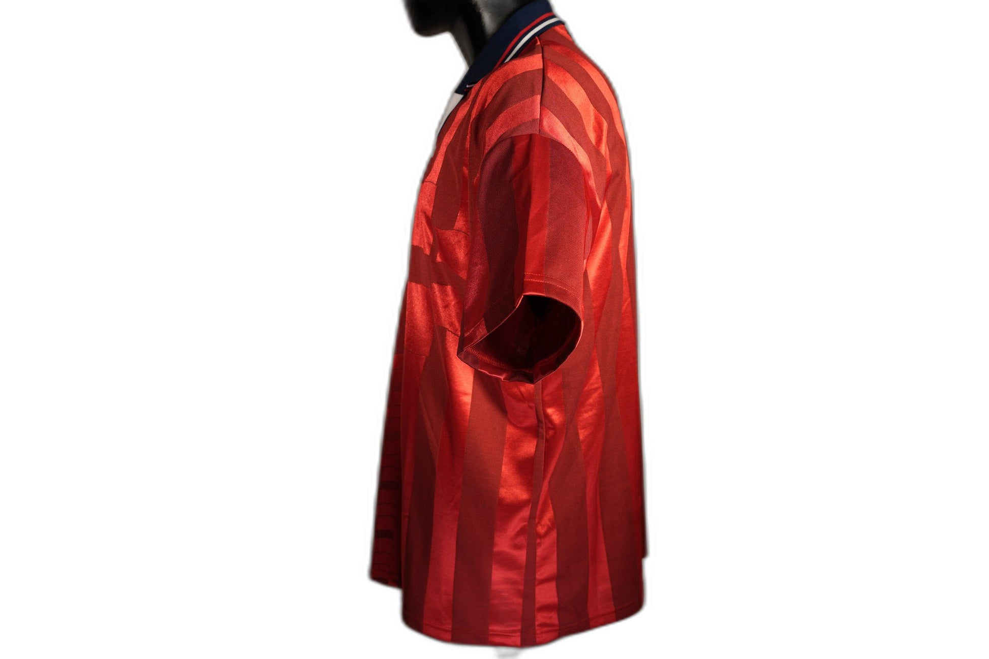 Camiseta visitante detallada de los “Tres Leones”. Usada en el Mundial de 1998, donde Inglaterra, con David Beckham, Gareth Southgate y un joven Michael Owen, alcanzó los octavos de final.
