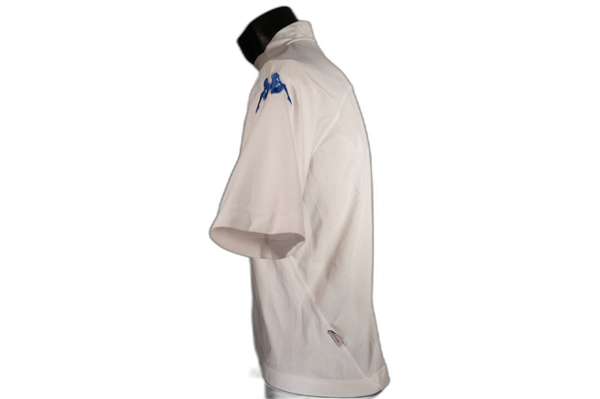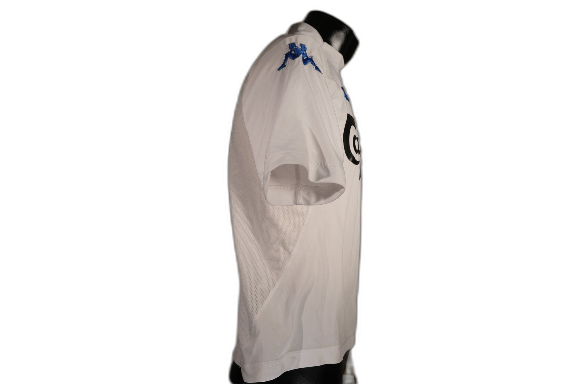 Camiseta local del FC Copenhague de la temporada 2004-2005 en color blanco liso con detalles en azul. El Copenhague terminó la temporada segundo en la liga danesa, pero ganó la Liga Real Danesa en los penaltis.