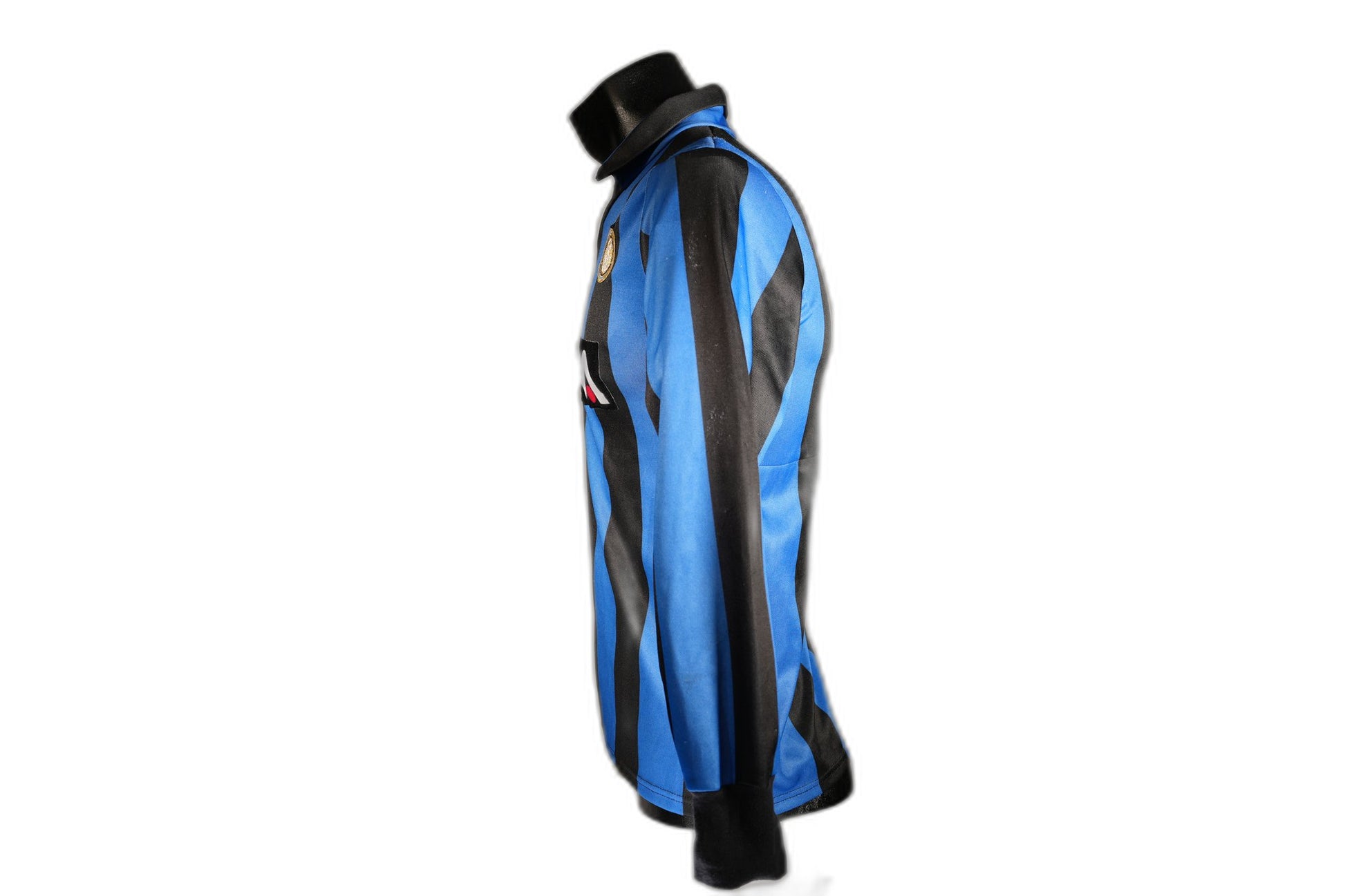 Camiseta local del Inter de Milán con el número 10 de la temporada 1990-1991, en la que el Inter de Milán compensó su mala temporada liguera ganando la Copa de la UEFA en la final contra la Roma. El máximo goleador del Inter de Milán esta temporada fue Lothar Matthäus, el número 10, con 23 goles. En el camino a la final de la Copa de la UEFA, quedaron eliminados, entre otros, Aston Villa y Rapid.