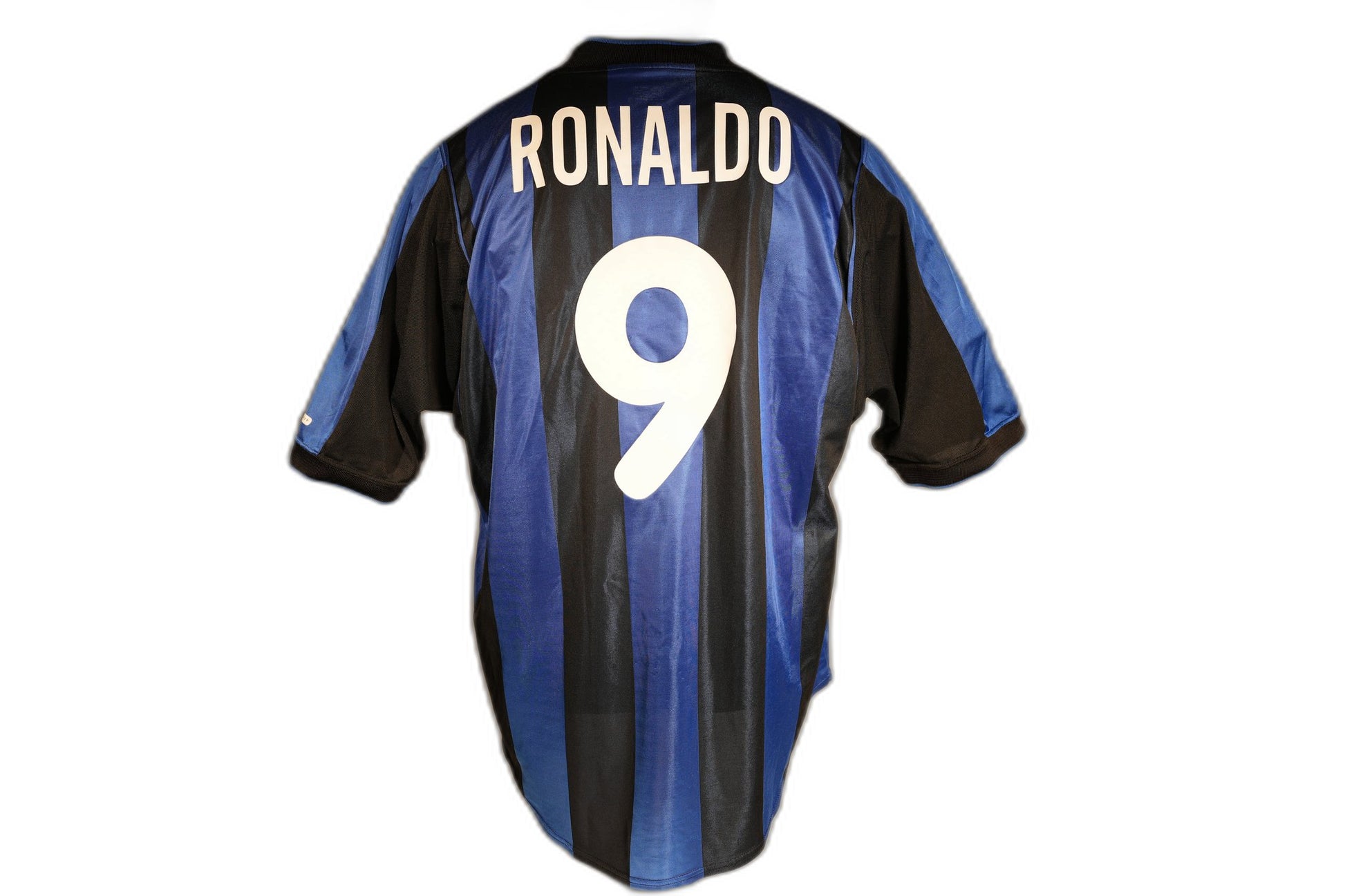 Camiseta local del Inter de Milán 2000-2001 (Ronaldo #9) - Talla XL. Camiseta Nike azul y negra de la temporada 2000/2001, usada por Ronaldo con el número 9. Esa temporada, el Inter alcanzó las semifinales de la Copa de la UEFA. ¡Un pedazo de la historia del fútbol para coleccionistas!