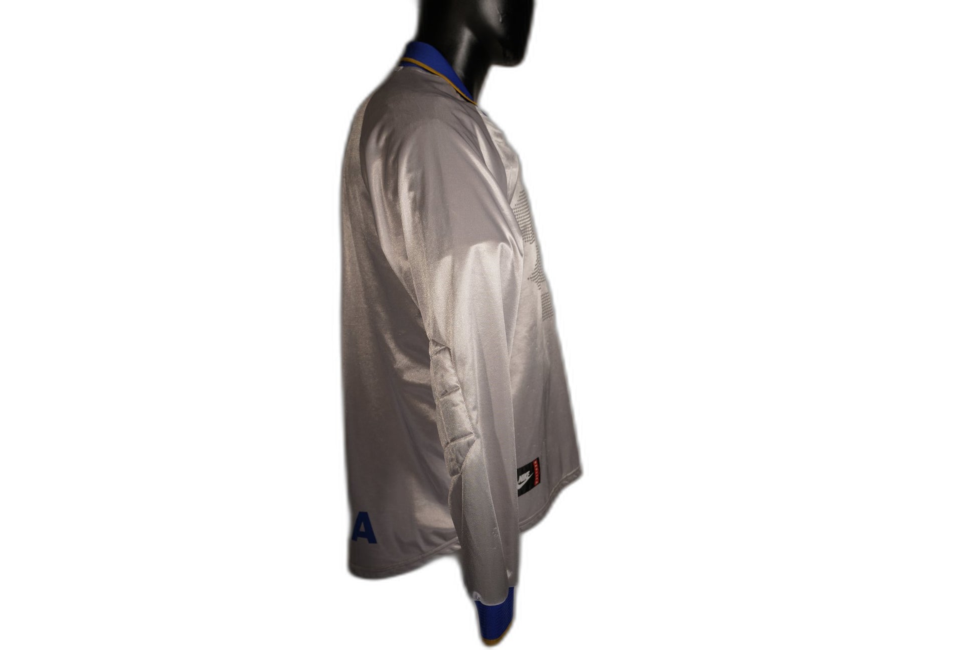 Torwart Trikot von Angelo Peruzzi aus dem EM-Jahr 1996. Italien musste nach Spielen im Anfiel und Old Trafford gegen Russland. Tschechien und den späteren Europameister Deutschland als Gruppendritter vorzeitig die Heimreise antreten.