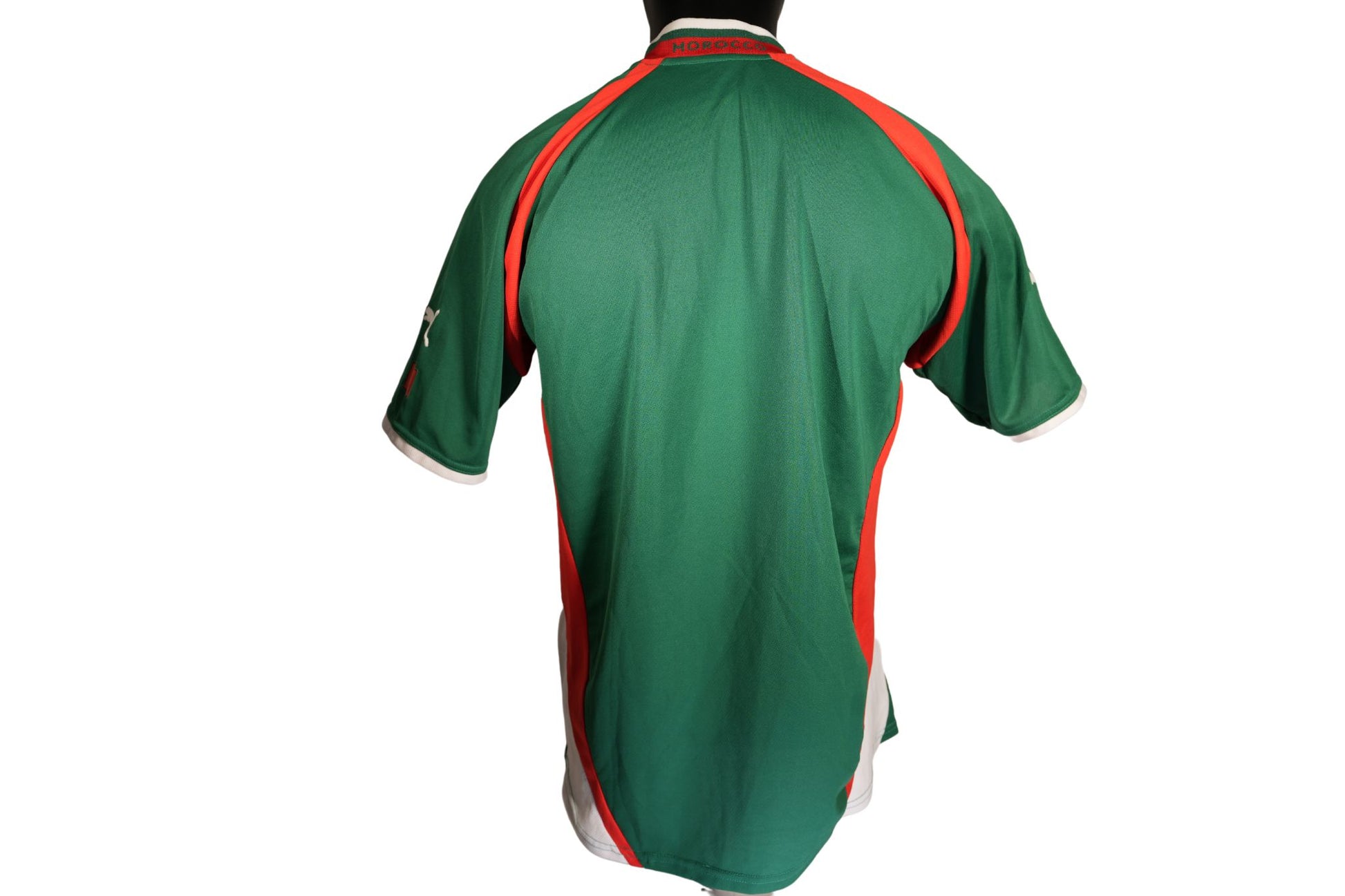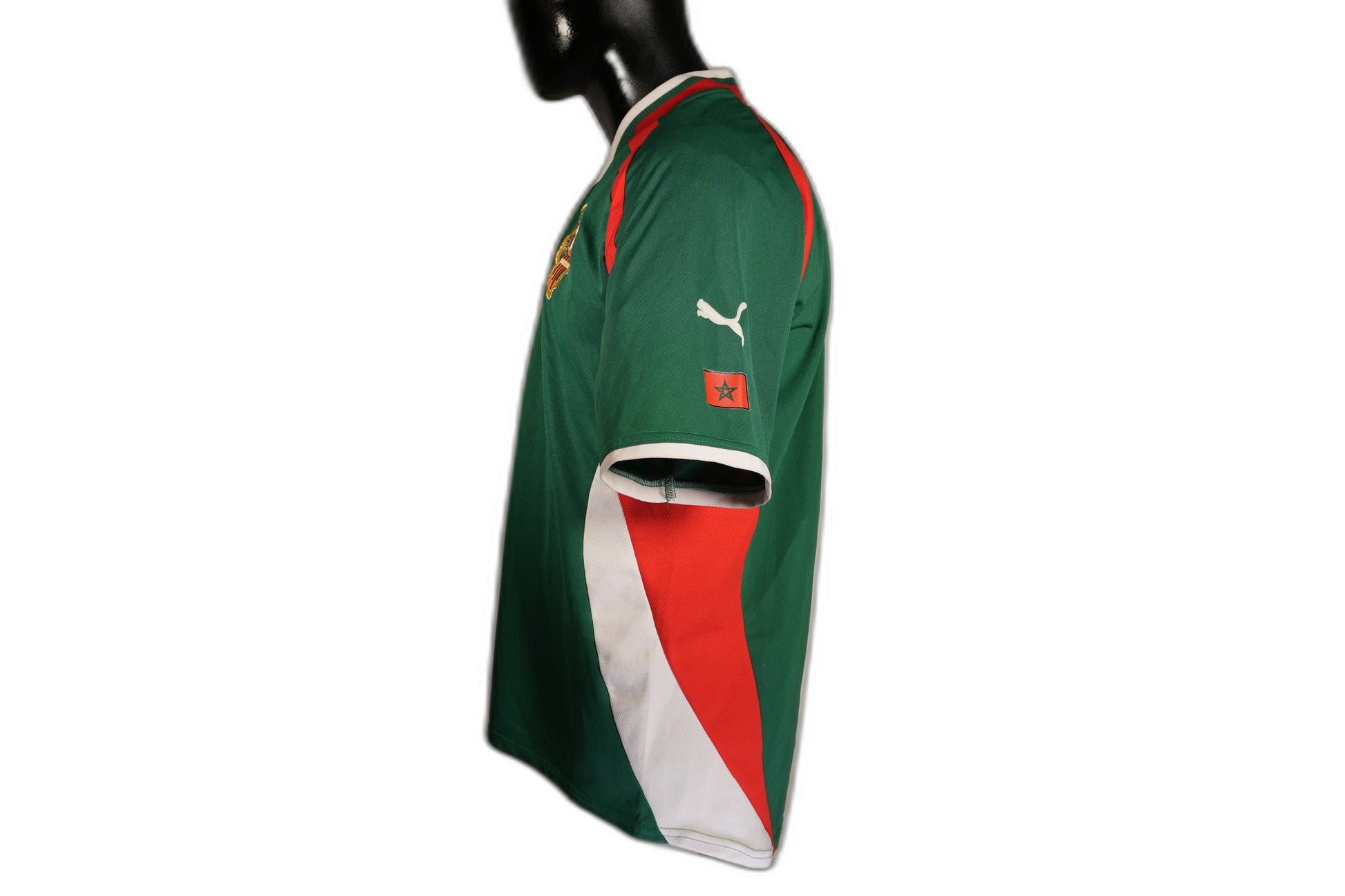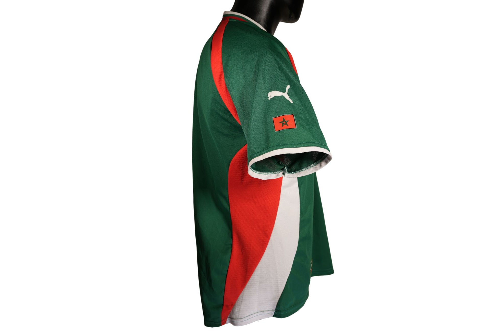 Morokko Trikot aus den Jahren 2000-2002 im klassischen Vintage Puma Stil. Die Auswahl Morokkos trug dieses Trikot im Africa Cup of Nations im Jahr 2002, als die Marokkaner als dritter der Gruppe B mit 4 Punkten die verfrühte Heimreise antreten mussten.